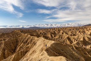 A four-hour flight from Abu Dhabi finds us flying over dramatic looking mountains en route to the capital of Kyrgyzstan, Bishkek. We have no idea