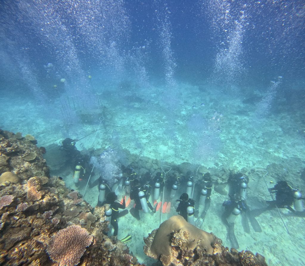 On our first night on the islands, we attend a talk by the resident marine biologist. The talk is on sharks, and specifically the research they are doing locally. The research demonstrates that the presence of apex predators has a very positive impact on marine diversity and reef regeneration. Although initially, deeply cynical about shark feeding, he explains how his experience on the island has made him see things differently. Thirty minutes up the coast, a sister resort, has been feeding bull sharks for several years. The result is that they now have a population of some 24 bull sharks which has enabled them to study their habits and record the positive impact on the surrounding reefs. It is serving as a beacon for other conservation efforts.