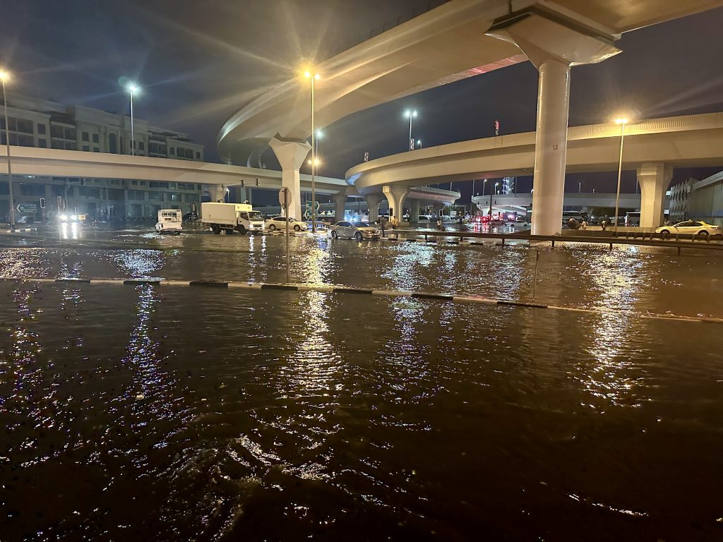 The roads are utter carnage. Most are closed. Our driver is in talkative mood. Think he’s lonely. Describes 7-hour journeys the night before to cover a few kilometres, people wanting to exit the cab in the flood waters when they saw the metre costs spiralling, watching luxury cars gets swallowed by the water, and generally describing scenes that had not been witnessed in Dubai in living memory.