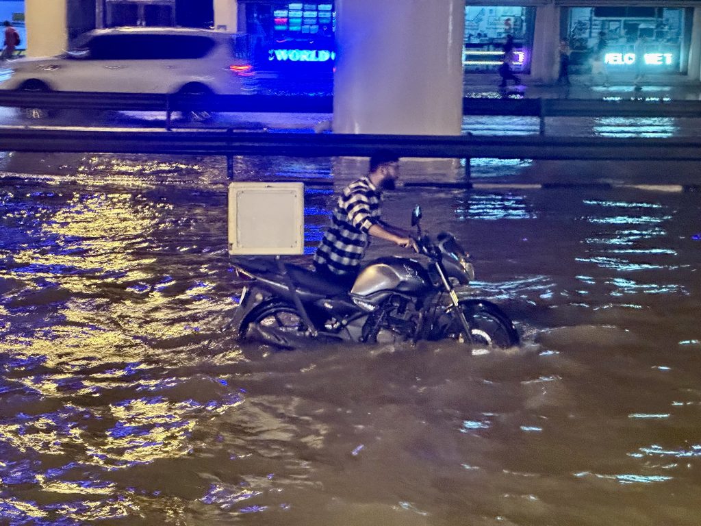 Quickly becomes apparent that this is not going to be easy. Although parts of Dubai look fine, others are under water. The only way through is to wade.
