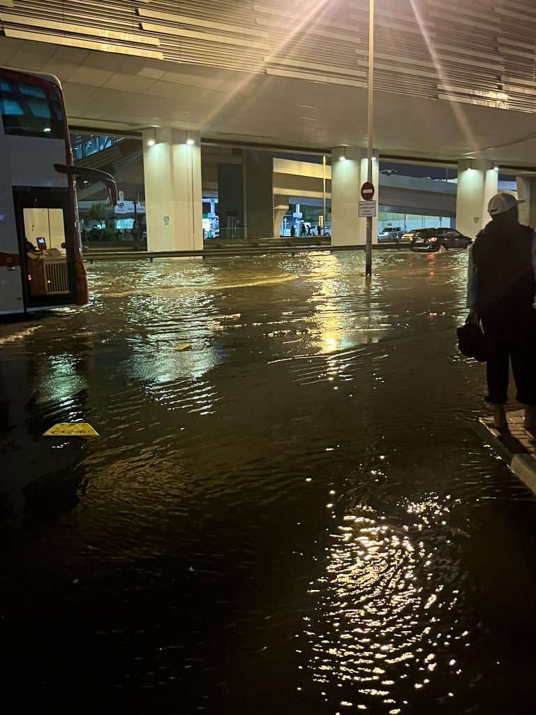 On our way through arrivals it is very clear that the storm has been worse than we thought. The infrastructure has clearly not been designed for the amount of rain it has received.