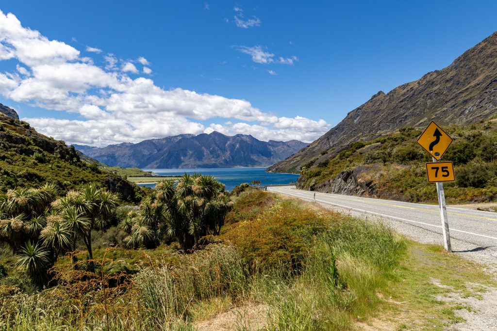 Our Airbnb is up a seriously steep hill. Vertical ascent, but worth every degree of elevation when we arrive. What a view! The house is perched high above Lake Hawea with a panoramic view over the town, lake and mountains. Barbecue beckons amid the lupins. Who wants to stay in a hotel when you can pay a fraction of the price and have all this space to yourself. En route to stock up with provisions, we visit the Instagram hotspot of Wanaka Lake. The tree in the water makes for a popular destination photo and people are queuing to have their picture taken perched on a rock in front of it. Not quite sure what all the fuss is about…