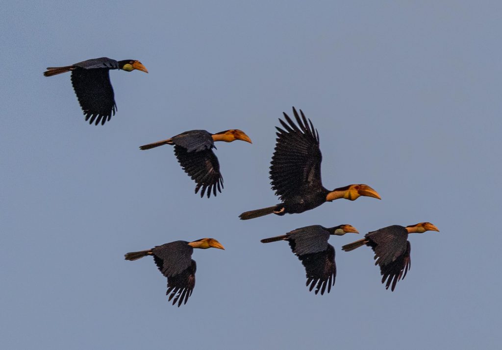 As the sun starts to set, we make our way to the so-called Hornbill Island. Right on schedule large flocks of Plain-pouched Hornbills start to return to the island. We probably watch a couple of hundred over the space of about 45 minutes. At the same time more than a dozen kites circle the island. Pretty magical and the sight makes for some cool photos.