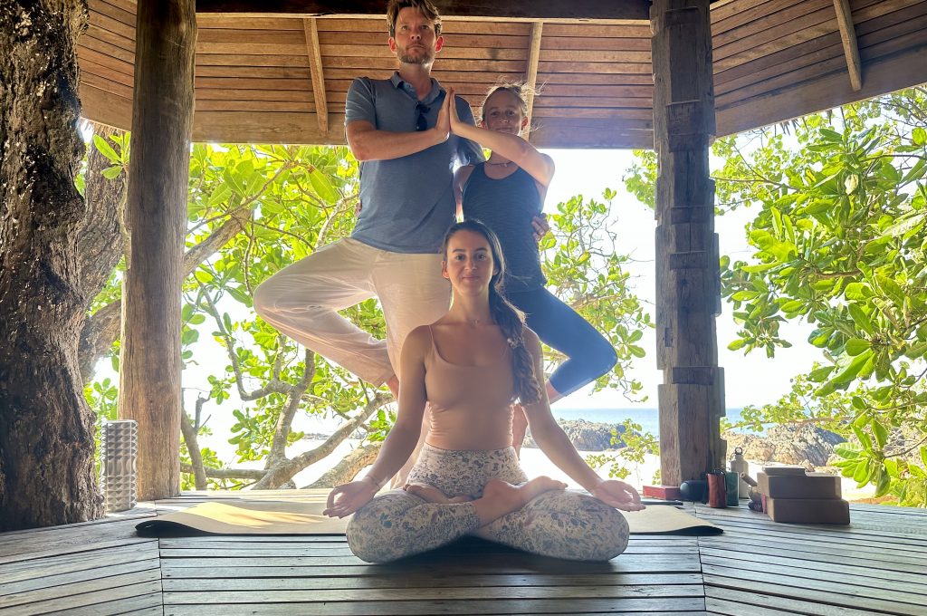 A walk along the beach takes us to my first-ever yoga class! As yoga settings go, this is pretty hard to beat! So far, so good.