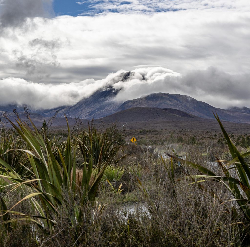 The following day is a washout, with weather warnings on the crossing (which is closed). Jenn studies the radar maps and discerns that the best of a pretty wet day is going to be at around 13.00. We head out and visit Gollum’s Pool (another Tolkien fan must-see), before heading into the park to see what the weather is doing. We get a tiny bit of luck, with the cloud lifting slightly, enabling us to at least see the outline of our Mount Doom (or Mount Ruapehu as it’s known outside of the Tolkien franchise). Within minutes however, the cloud has lowered, and the volcano has miraculously disappeared. The forecast for the next few days doesn’t inspire confidence but there is always hope!