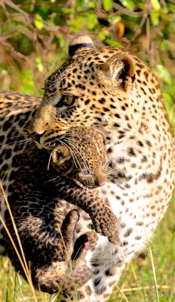 We love leopards! Incredibly lucky to see this mother moving its cub.